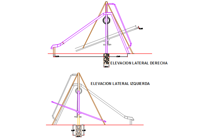 Garden playing equipment detail view dwg file, Garden playing equipment detail view specification detail, dimension detail, child swing plan elevation and section view detail, etc.