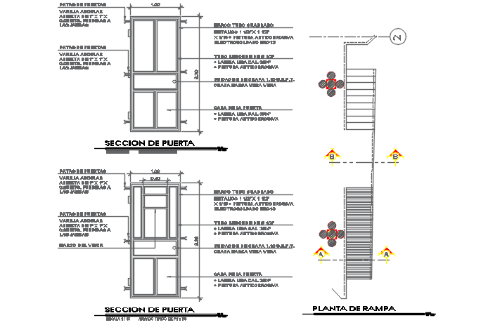 Door framing plan and elevation detail dwg file