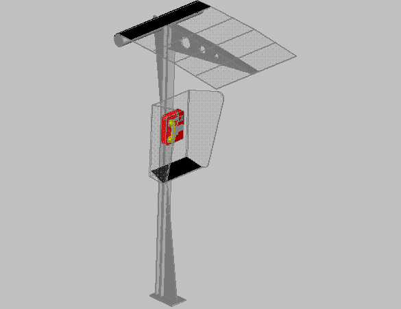 3d design of pole type telephone booth details that includes a detailed view of pole view, glass roof view, telephone view and much more of telephone booth details.