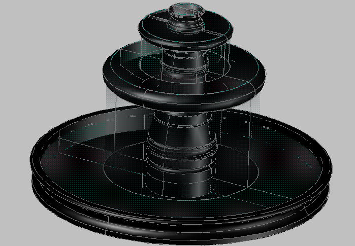 3d design of garden fountain details that includes a detailed view of three layer fountain view, water fall view, water area and much more of garden fountain details.