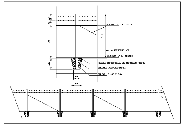 Perimeter installation details of public garden that includes a detailed view of footings details, iron rod, measures, cuts, joints and much more of fence details.