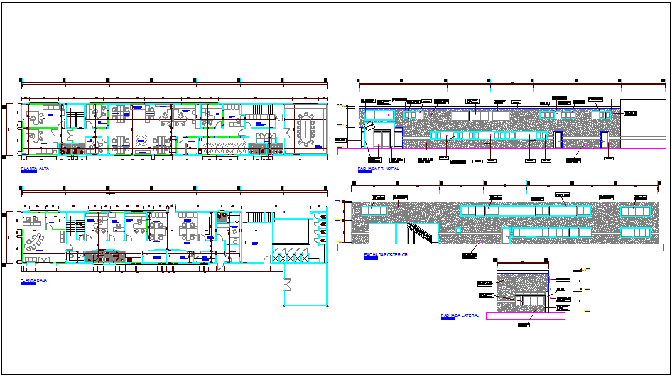 Office building plan and elevation dwg file in office building plan with wall view and area distribution,entry way,different department office area,washing area and view of
