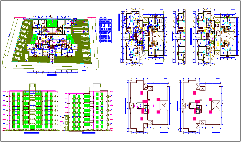 Architectural floor plan of municipal building with elevation and elevated tank plan dwg file