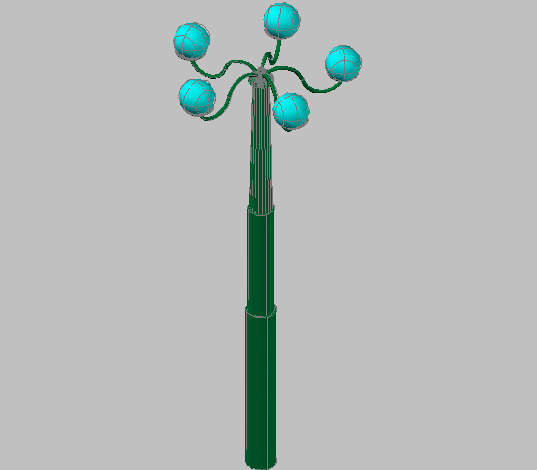 3d design of light pole with five arms glass lamps dwg file.