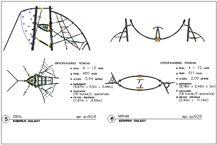 Modern equipment for infantile park that includes a detailed view of children playground equipment, slides, swings, adventure equipment, wooden equipment and much more of park equipment details.