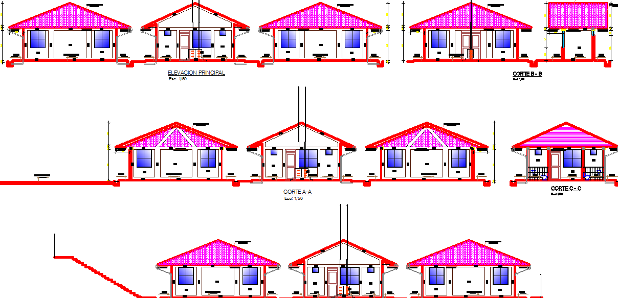 Elevation of a building dwg file, here there is elevation of a initial center, small cottages design