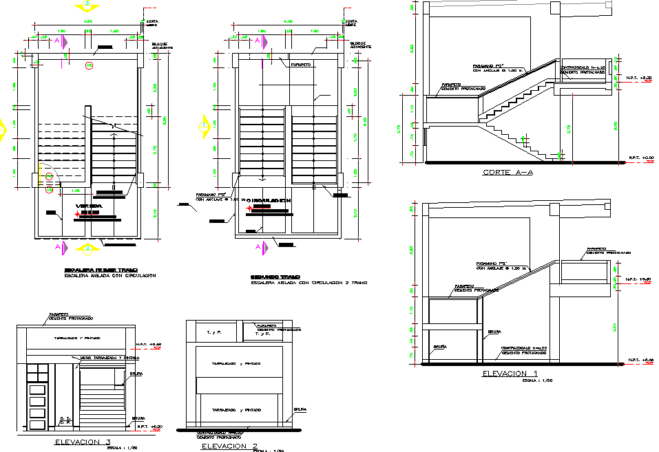 Staircase design and sectional details dwg file, elevation and section of riser and tread is shown