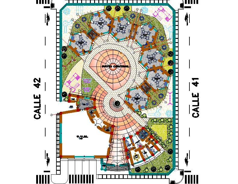 Early education center plan dwg file, complete detail of a education center is shownn, landscape detail, furniture detail