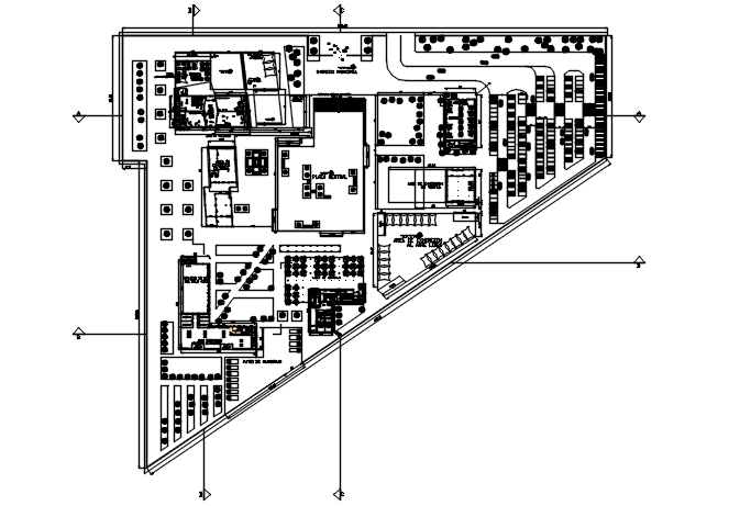 Office building plan detail dwg file, Office building plan detail in dimension detail and naming detail, celler plan to terrese plan detail, furniture detail in chair, table, wetting room, employee room, garden area detail plan, etc.