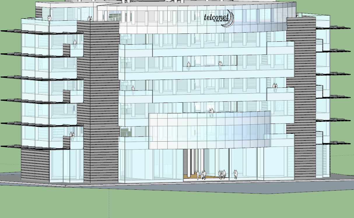 3d Building Project skp file. find here 3d elevation design with glass detailing also have corporate office building design.