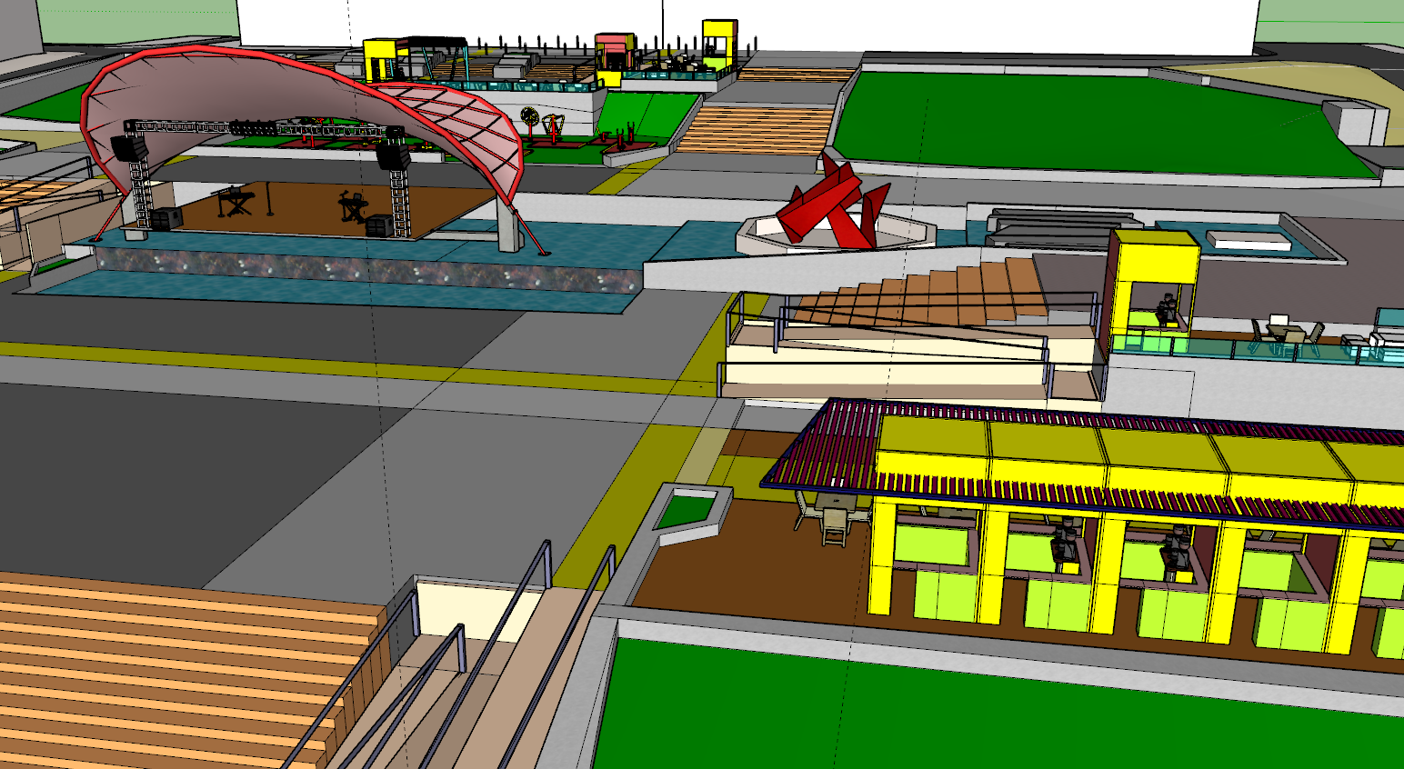 find here the architecture landscaping design with swimming pool, garden, restaurant, fountain and much more detailing.