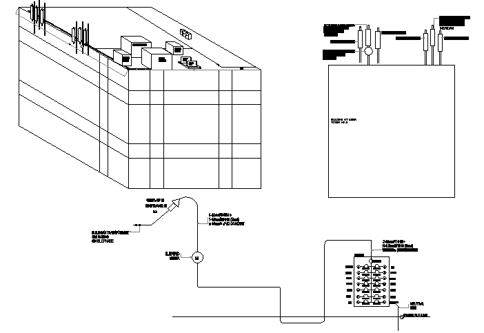 Radio tower building and single line diagram details that includes a detailed view of isometric view, cabin smart, stock room, cabin globe, diagram, water tank, other network, existing panel antenna and much more of tower installation details.