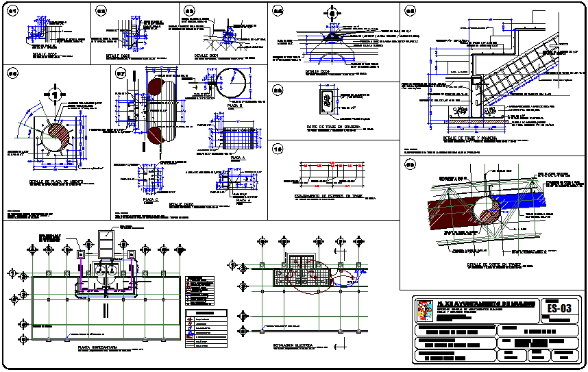 Steel structural detail of stadium with electrical and hydro sanitary detail dwg file