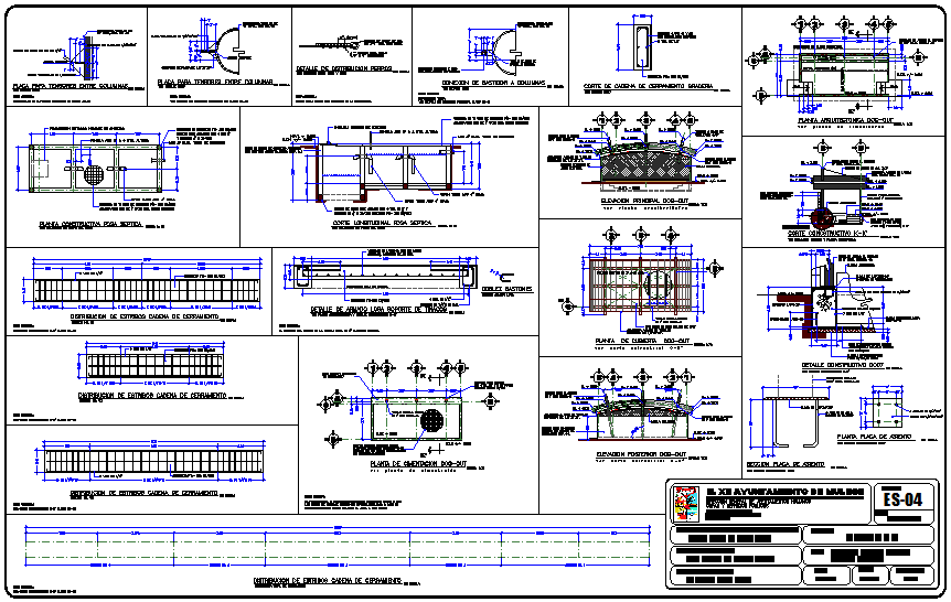 Column detail of structural view of stadium dwg file in detail view with different types of