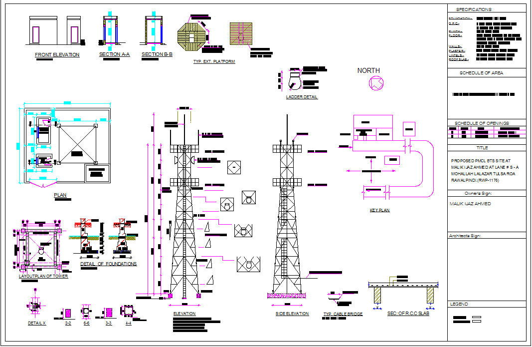 Telecommunication Tower AutoCAD DWG with Elevation and Foundation Plan
