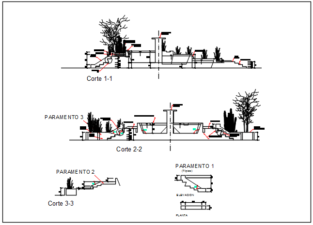 Section 1 and section section 2 plan detail dwg file, Section 1 and section and section 2 plan detail with naming detail, dimension detail, public garden detail, tree detail, etc.