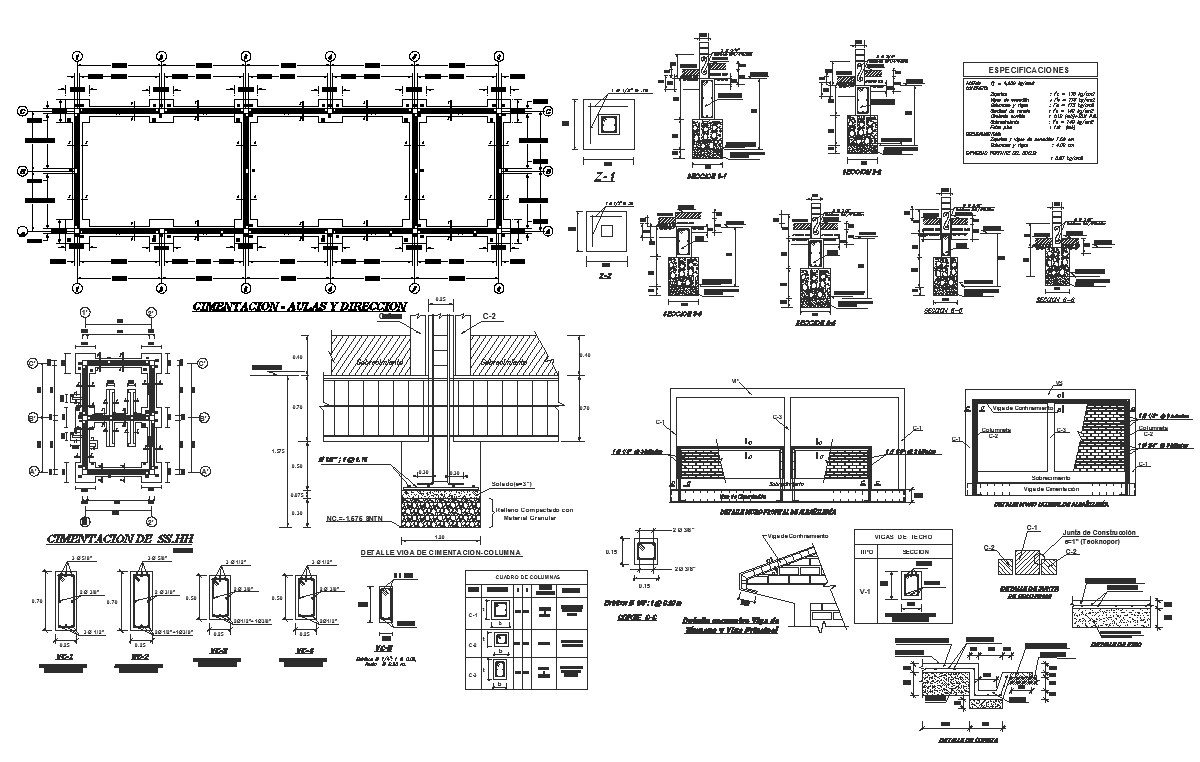 Foundation plan of collage with column and wall detail view dwg file in foundation