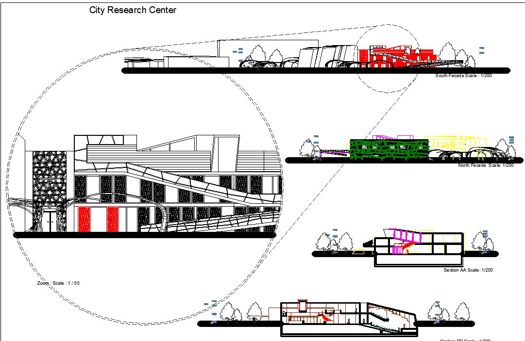 and door,window and wall,balcony and stair view with floor level view and elevation