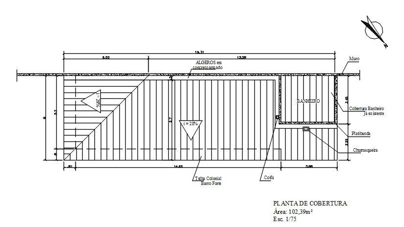 Roof plan detail dwg file, Roof plan detail with dimension detail, naming detail, arrow detail, north direction detail, etc.