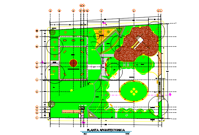 Center line Landscaping layout plan detail dwg file, Center line Landscaping layout plan detail with colour detail, lining detail, etc.
