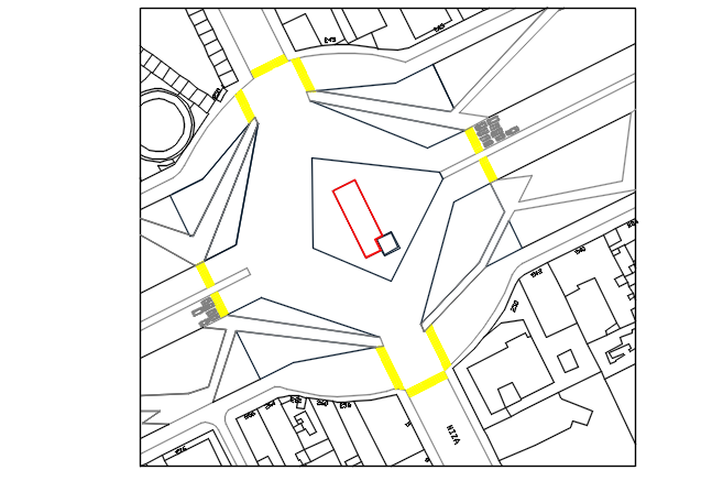 Key plan detail dwg file, Key plan detail two routes in building plan in out side, and grid line in key plan drawing, etc.