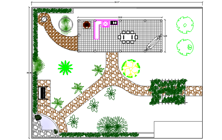 Landscaping layout plan detail dwg file, Landscaping layout plan detail with dimension detail,colour detail, lining detail, etc.