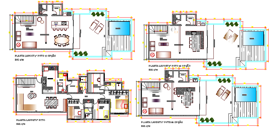 Modern villa type bungalow architecture layout plan details dwg file