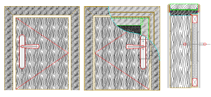 Wooden flush single and double door details that includes a detailed view of door design, door, wooden frame, screw, channel, joint, cuts door handle, door elevation, grill and much more of door details.