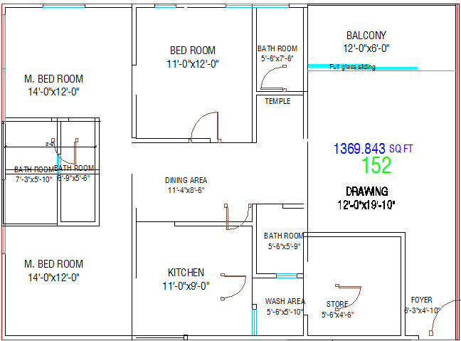 One family house layout plan details that includes a detailed view of main entry door, mini garden, family hall, living room, kitchen, dining area, two bedroom, master bedroom, toilet and bathroom, wide balcony, indoor staircase, laundry area, terrace and much more of house plan details.
