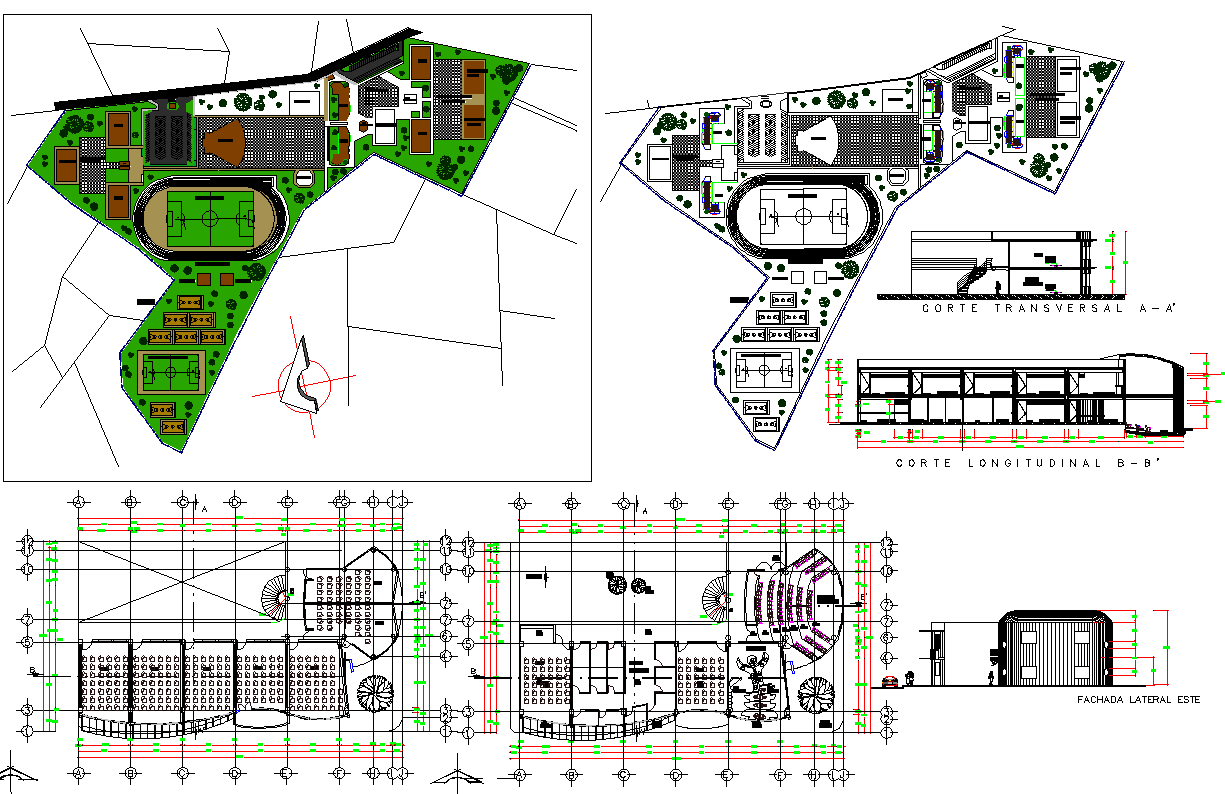 Classroom and auditorium hall of college details that includes a detailed view of general hall, admin office, performance stage, toilets and bathroom, dressing room, classrooms and much more of college details.