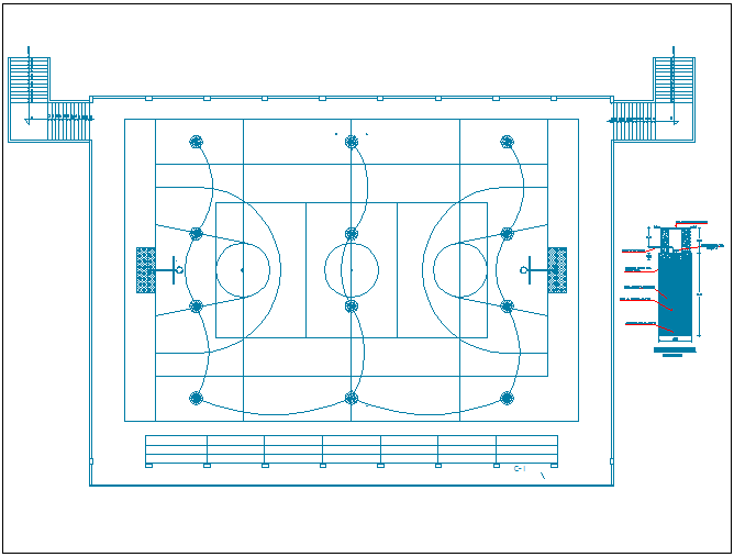 Sports ground details of school that includes a detailed view of staircase view, play area, pitch, measures, landscaping and much more of sports ground details.