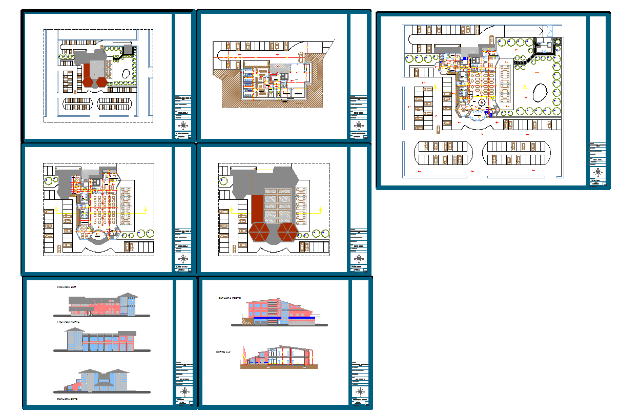 The file also includes precise sectional views and façade elevations that provide an understanding of height distribution, floor connectivity, and external design. Each floor plan is drawn with accurate measurements and architectural detailing suitable for real-world construction and visualization. This CAD drawing serves as a reference for architects, civil engineers, and designers working on corporate or public-use infrastructure projects. The design’s clarity and layer management make it ideal for editing and adaptation in AutoCAD and similar CAD platforms.