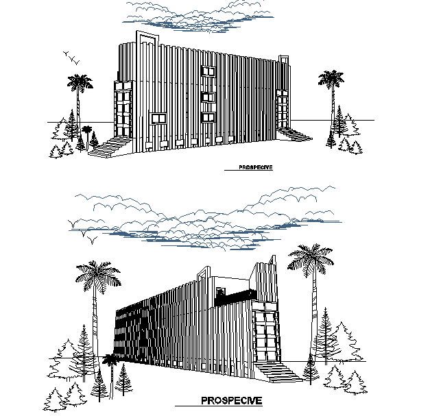 Perspective view of an educational institution dwg file, here there is a perspective view of a modern educational building in auto cad format