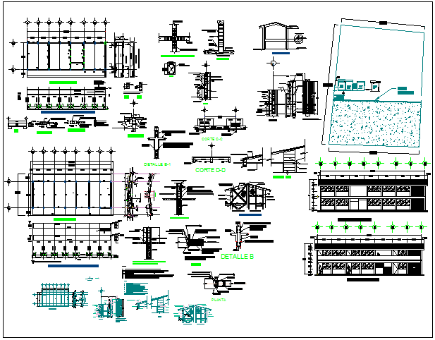 Plan and elevation with construction detail of executive project of classroom dwg file