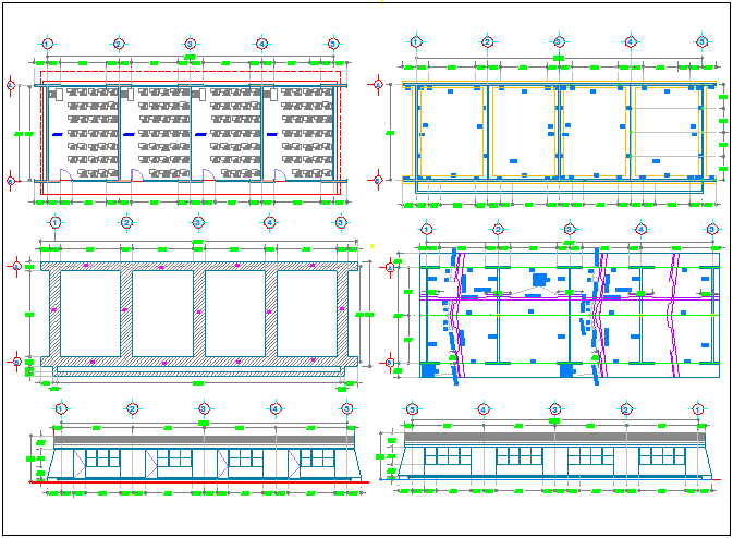 Foundation and roof plan of classroom with construction view dwg file