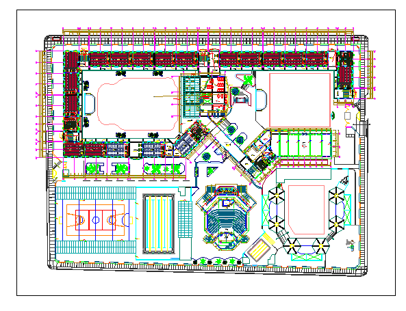 Integral school landscape view dwg file in landscape view with road and tree view and