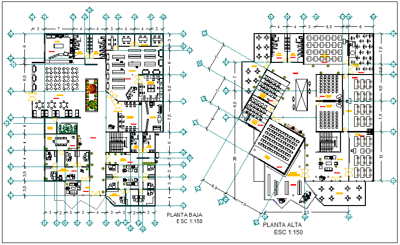 Architectural Floor plan for school of art dwg file in first floor plan with view of area distribution and view of wall and flooring view and entry way,lobby,admin office,library and office area and cafe area view and second floor plan with classroom and music room view with necessary dimension.