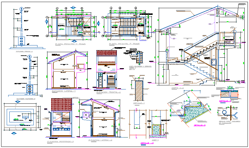 Plan,elevation and construction detail of school dwg file