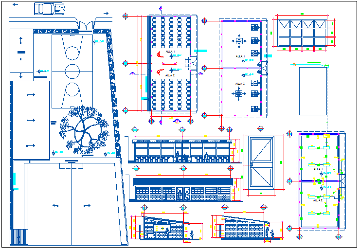 Primary school classroom architectural plan,elevation and section view dwg file in plan