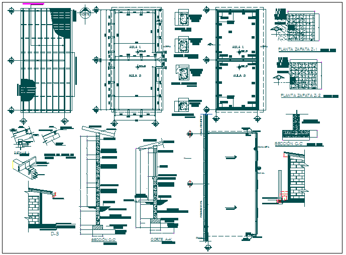 Floor plan and section detail view of primary school with structural detail dwg file in