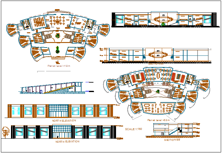 Management collage plan,elevation and section view dwg file