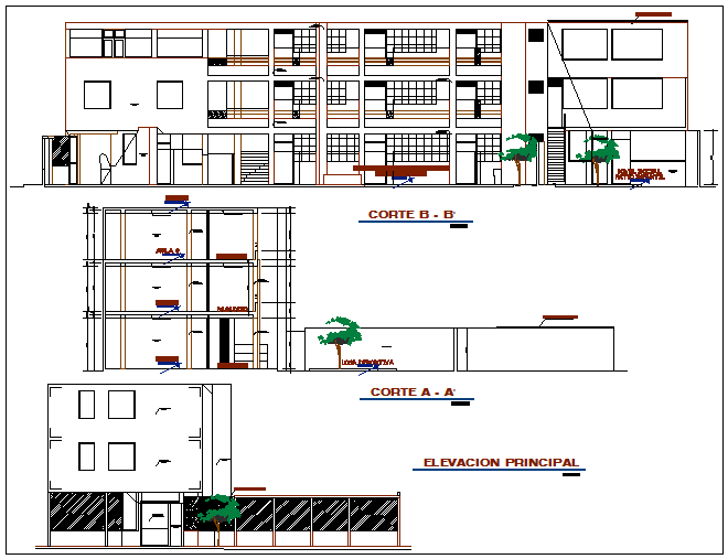 Elevation and section view of collage dwg file