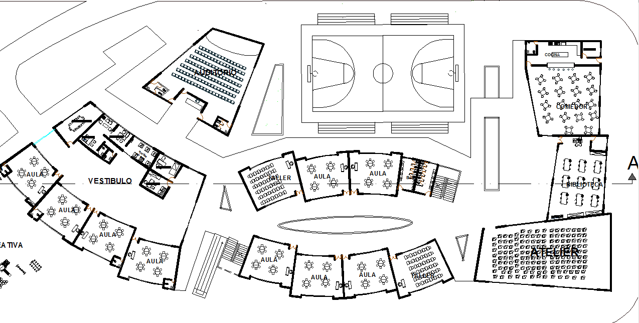 Play court area of school dwg file, Classroom module layout plan dwg file, seating plan of a classroom, table and chairs, staff room detail, gardening area, play court area