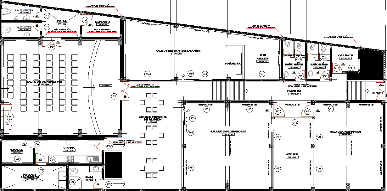 Food court in school, auditorium layout dwg file, here there is layout plan of canteen, dining arrangement, bathroom detailing , wc details