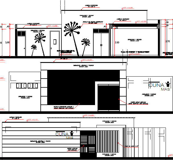 Outer building design of school dwg file, outer building outlet, designs, material is shown, elevation design in auto cad format