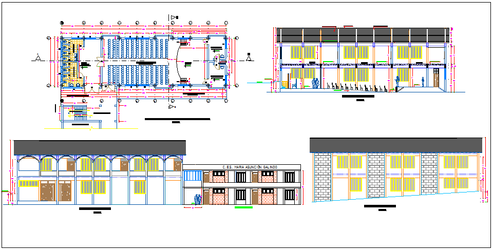 Plan,elevation and section view of school classroom view dwg file
