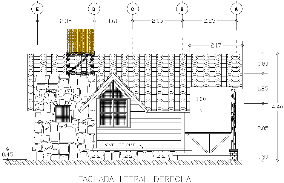 Front elevation detail dwg file, Front elevation detail with naming detail, dimension detail, roof elevation detail, door, window detail, cut out detail, etc.