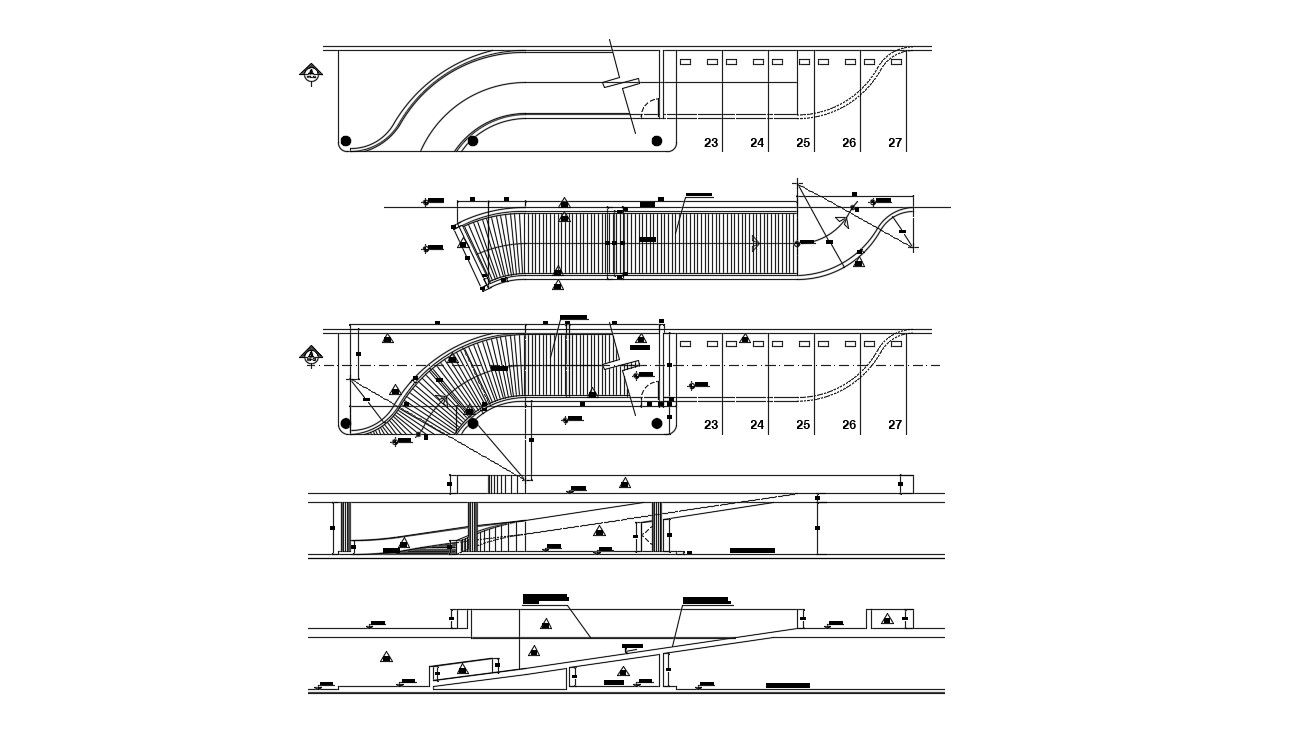 Ramp Plan AutoCAD File Ramp and stair plan detail with dimension detail, naming detail, stair steps number detail, center line plan detail, etc.