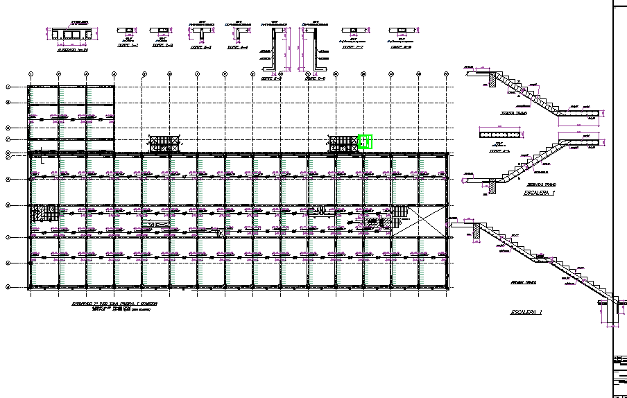 Stair section detail and center line detail dwg file, Stair section detail and center line detail with dimension detail, naming detail, column and beam detail, etc.