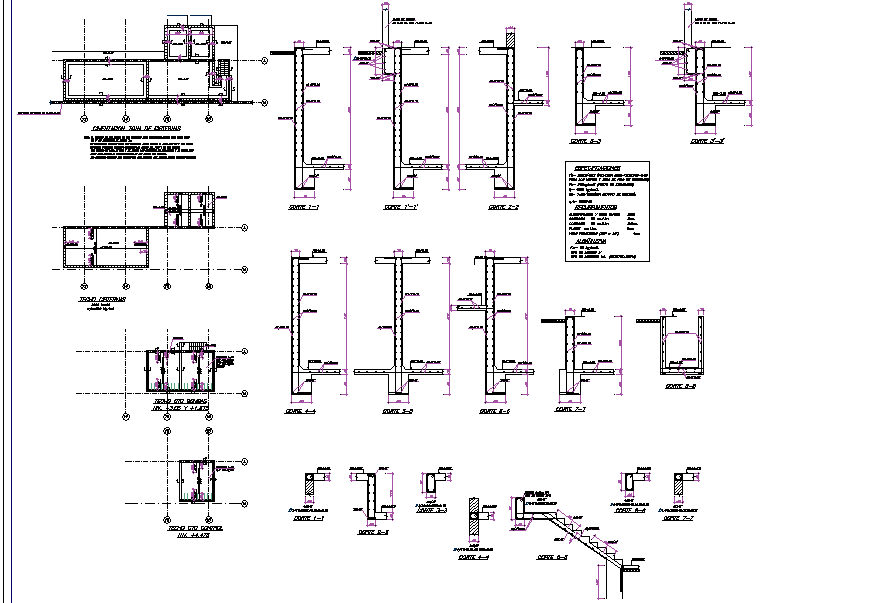 Stair section detail and column detail dwg file, Stair section detail and column detail with dimensions detail, naming detail, reinforcement detail, center line plan detail, etc.